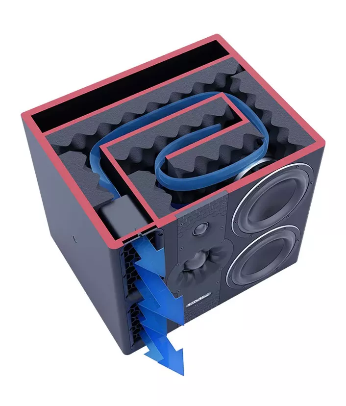 Laminair™ Aerodynamic Venting, inspired by Formula One, reduces turbulence and drag, providing a faster, cleaner bass response with superior timing.